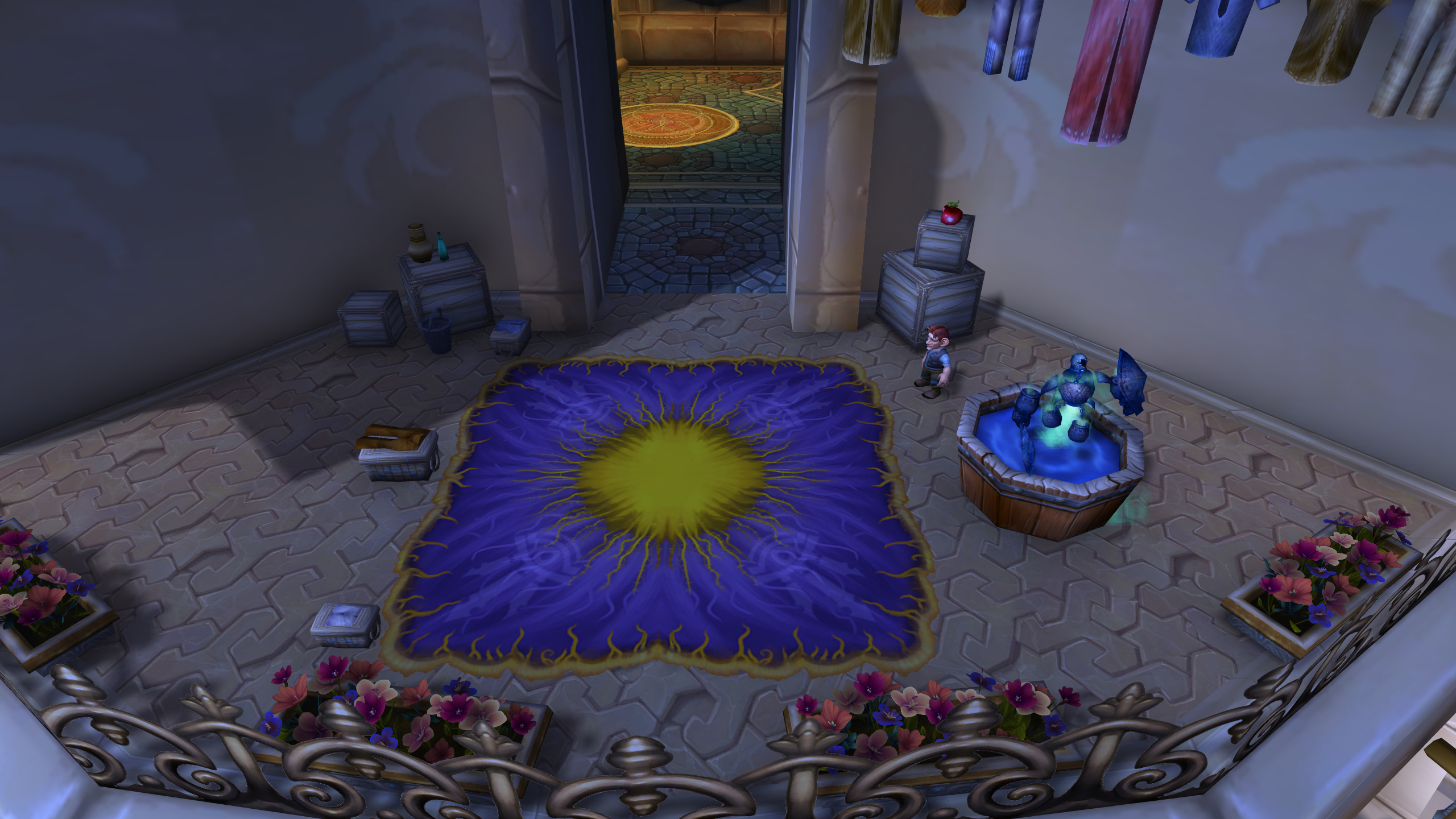 The Threads of Fate is directly opposite the Silver Enclave in Runeweaver Square. On the upstairs balcony is Shandy Glossgleam: