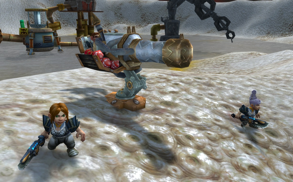 The airstrip and the neighboring Geyser Fields are in a rough situation. The Fizzcrank Airmen and Anti-Scourge Cannons are busy fighting off attacking Ironbound Troggs, while further out on the fields, Airmen, Scavenge-bots 004-A8, and Sentry-bots 57-K skirmish with both Ironbound Brutes and Scrapthrowers and rogue robots in the form of Malfunctioning Scavenge-bots and Sentry-bots. While most of the airstrip's normal NPCs are still present, Fizzcrank Fullthrottle himself is missing for the entirety of the questline.