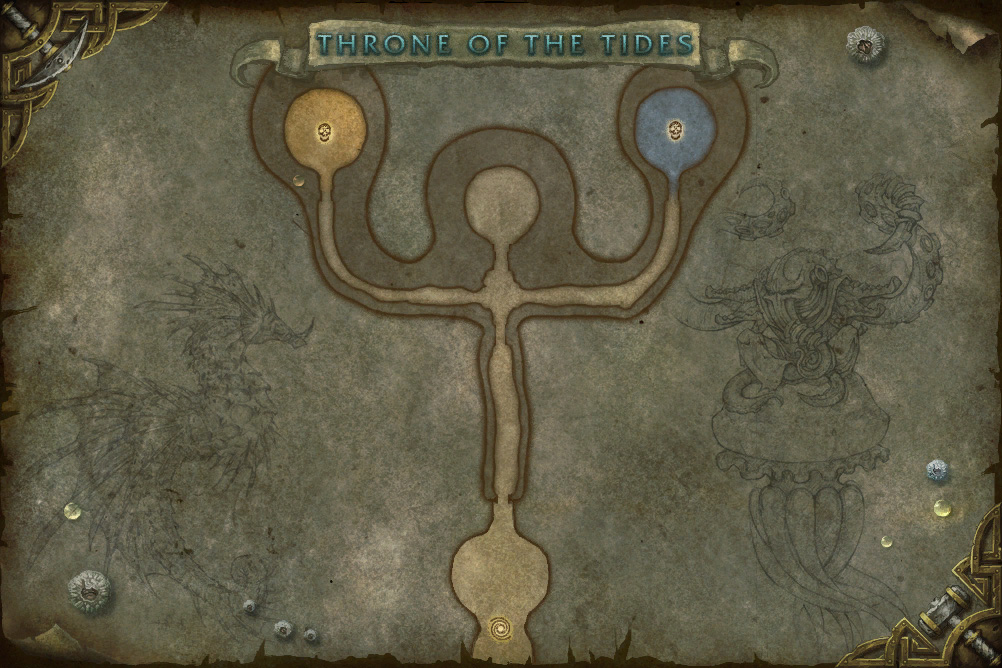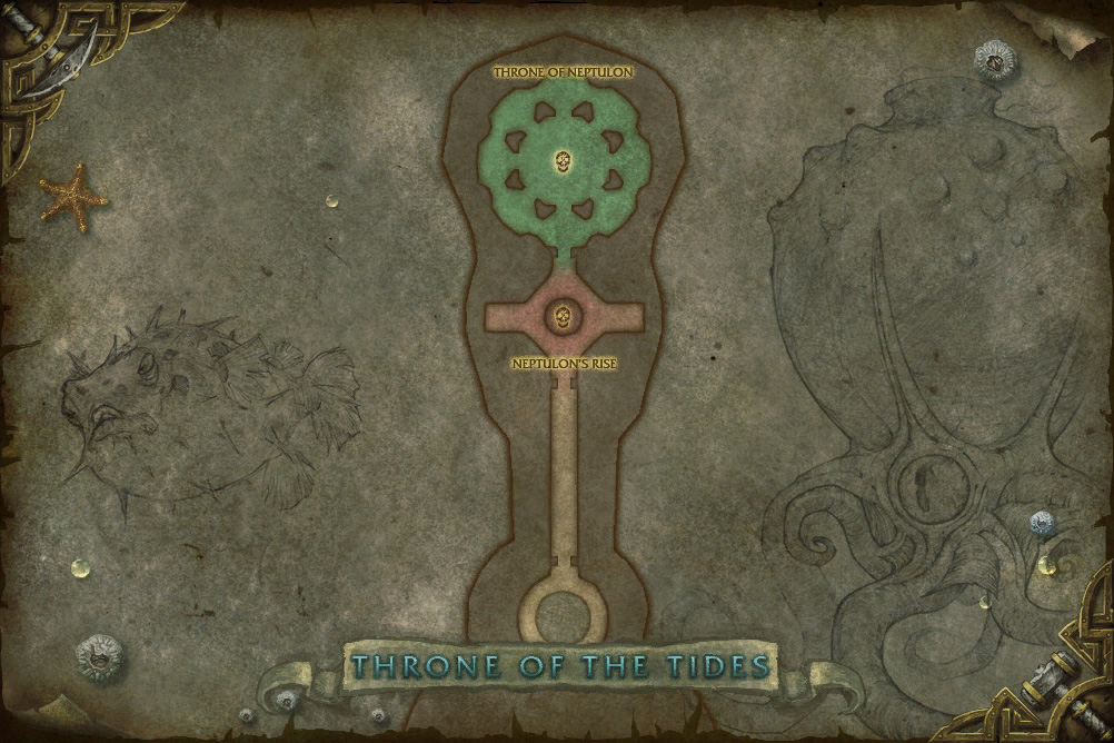 Map of the second floor of the Throne of Tides dungeon.