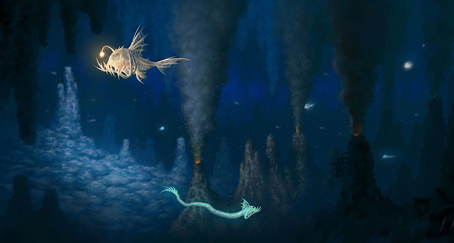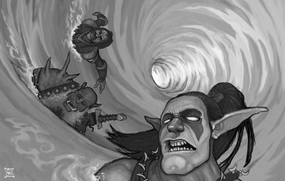 Traveling beneath the waves, within the Abyssal Maw itself, can be troublesome, and not just because of the need to breathe underwater. Vortices occasionally form of their own accord, creating tremendous tidal forces that threaten to tear apart their victims. Violent temperature shifts also move upward through the waters like bubbles rising from the ocean floor, subjecting travelers to bone-numbing cold. Parts of the Abyssal Maw are thousands of feet deep — so far down that even light doesn't reach the ocean floor. Traveling beneath the surface in these areas subjects travelers to intense pressure.
