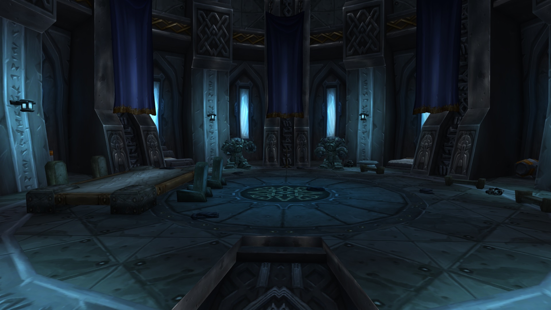 Aegrim's Study is a chamber originally belonging to thane Aegrim Bronzebeard of the Bronzebeard clan. It is accessible from Old Ironforge in Ironforge. Ancient Golem Guards and dwarven corpses are located here. During the Fourth War, a dwarf adventurer arrived here in search of the Bulwark of the Mountain King, but its stand was empty,[1] with its fragments shattered all over the chamber.[2]
