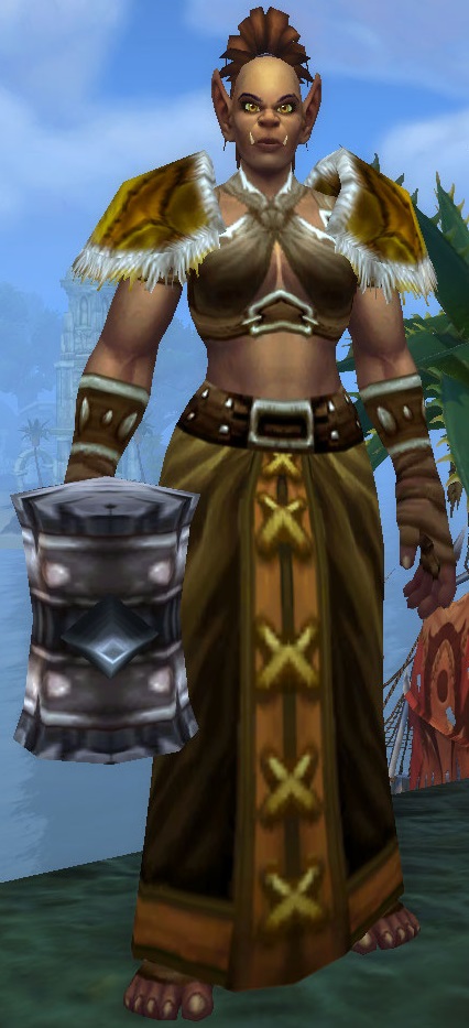 Aggra was born of a shattered world, and learned the ways of the elements among the Mag'har orcs of Outland.[9]