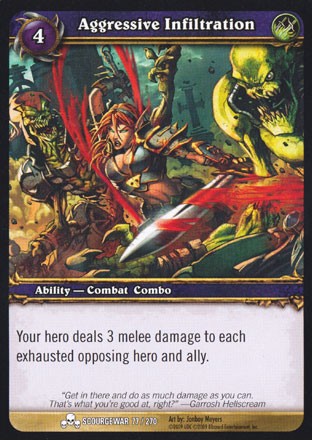 | Rules | Your hero deals 3 melee damage to each exhausted opposing hero and ally. |