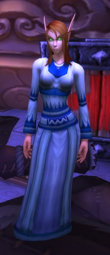 Ala'thinel is a blood elf first aid trainer located in the Chamber of Masters in the Shrine of Two Moons.