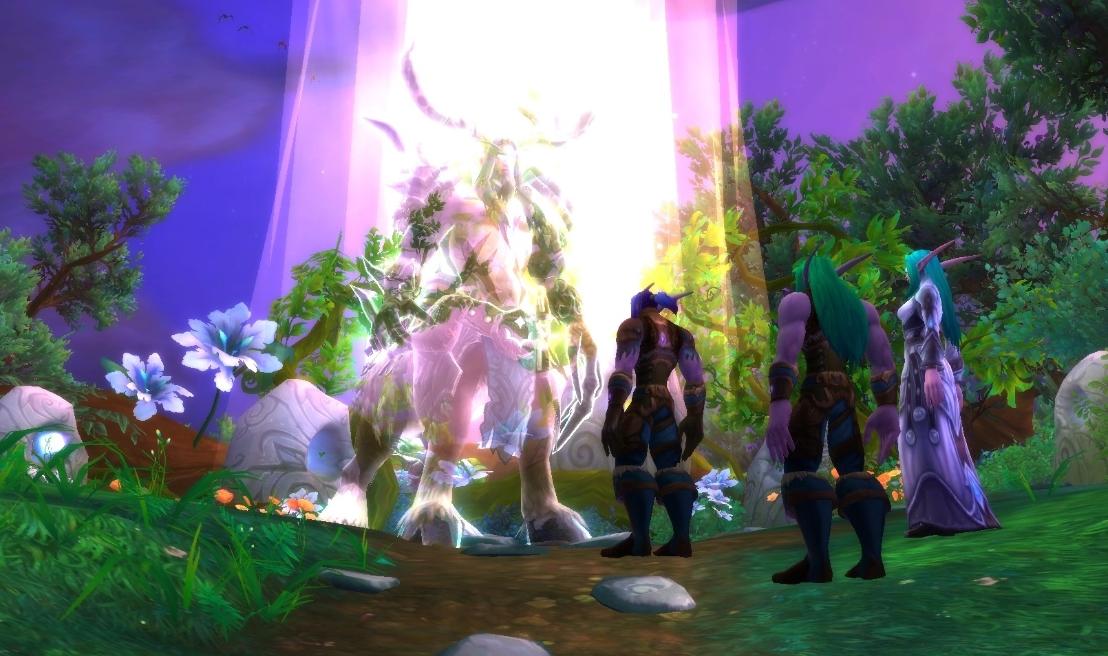 - Illidan, Malfurion and Tyrande are standing at the Dreamgrove, where the Seed of Ages normally is, in front of a projection of Cenarius.