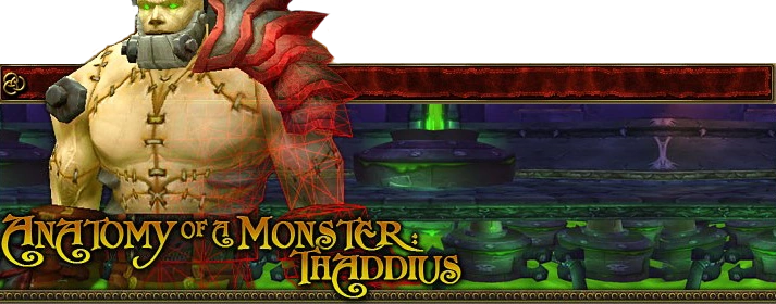 This article is a copy of "Anatomy of a Monster: Thaddius", an official article from the World of Warcraft Community Site as part of an interview with WoW Insider. It overviewed the fight against Thaddius in Naxxramas present in World of Warcraft. The original article is no longer available, but it can still be viewed through online archives (see below).