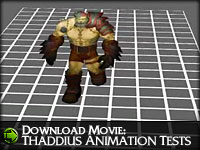 How does a reanimated corpse move? What about a creature that's actually pieced together from several different corpses which may not fit together all that well? Our goal with the animation was to really convince the players that the ground shakes beneath the monster's feet and that nothing short of a small army (or perhaps, say, a raid group?) could stop this behemoth. Thaddius' standard "damage" animation for example is a short flinch, as if that pyroblast you just threw at him didn't even hurt. We also decided to make the creature move almost ponderously slow in a kind of "Frankenwalk" to provide players with a visual clue about the monster's incredible weight and strength.