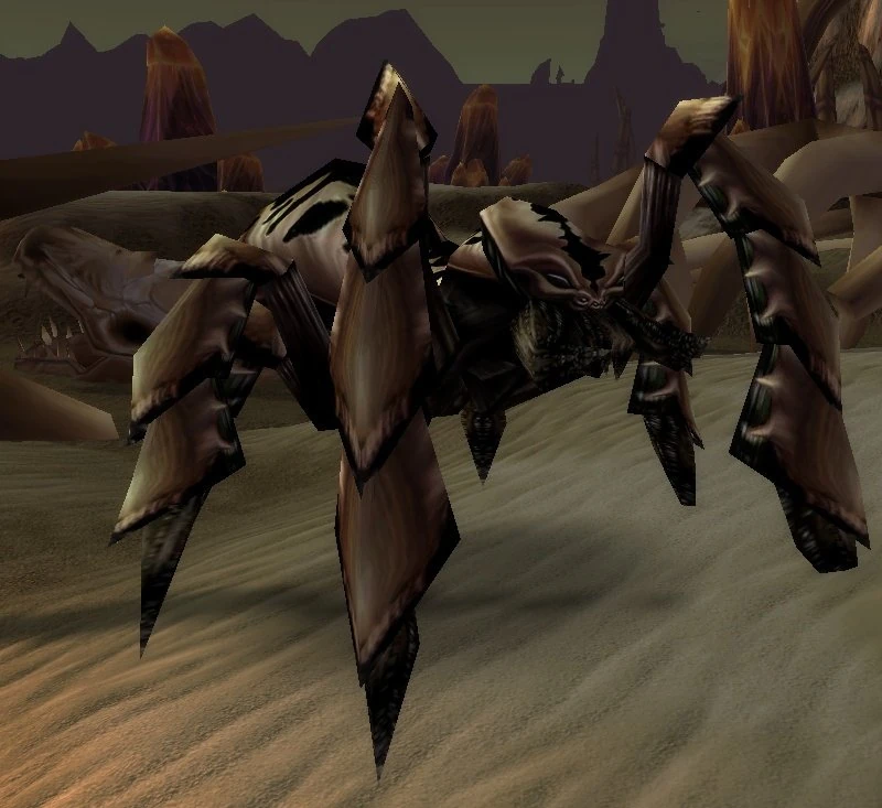 Arakis, the Hive'Zora overlord, is a brown/grey silithid worker found in Silithus. He is under the order of the qiraji and receives their orders through Emissary Roman'khan at the Bones of Grakkarond.