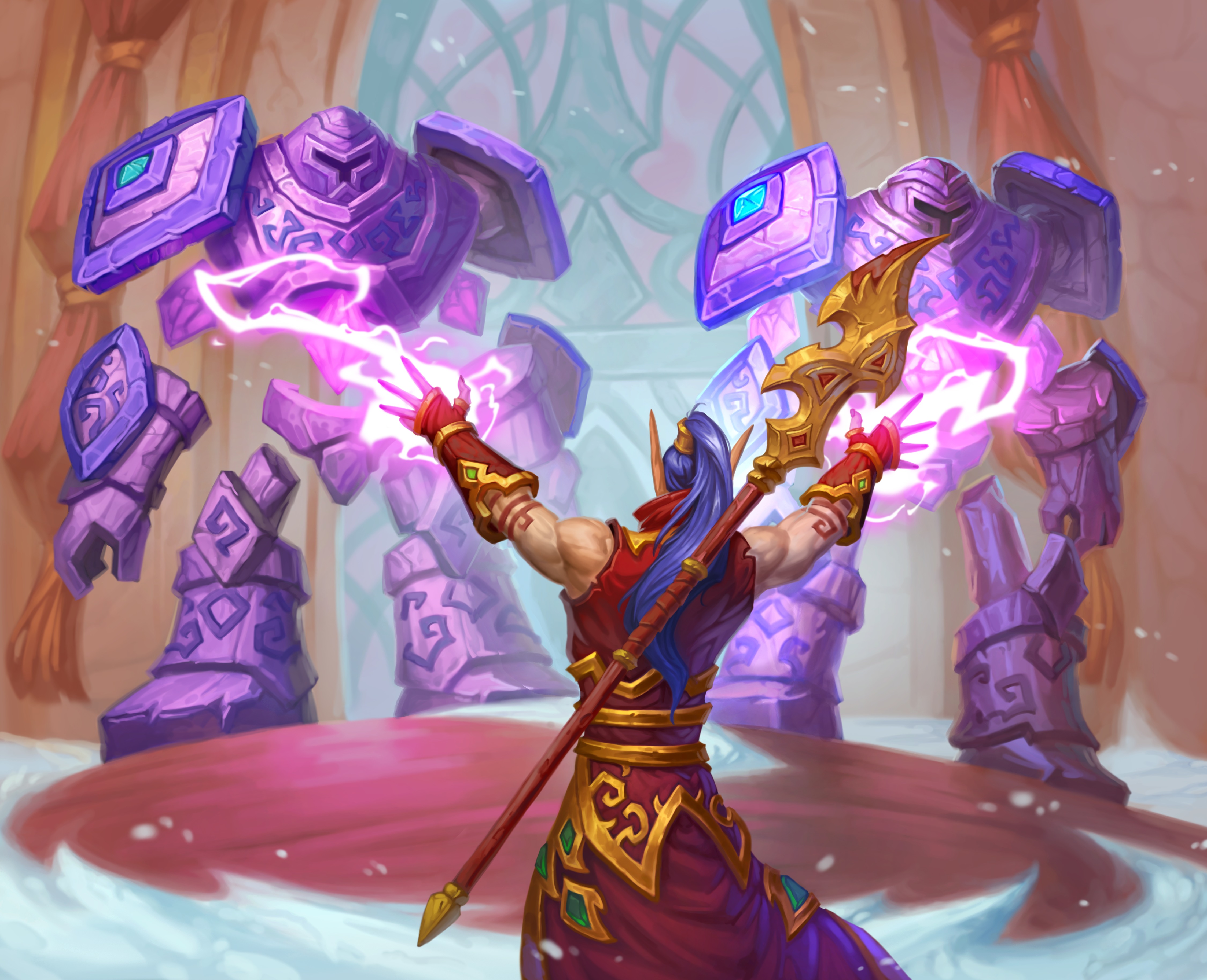The Guardian Medivh repelling the jungle trolls' invasion of Stormwind during the Gurubashi War.