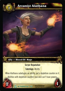| Rules | Scryer Reputation. Sabotage: Ability. When Alathana sabotages an ability, put a depletion counter on it. Abilities with depletion counters lose and can't have powers. |