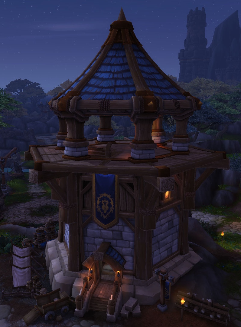 The first Alliance Tower in the zone, all Alliance players within Archmage Overwatch gain 20% to their healing and damage done. As the final defense against the invasion of Stormshield Stronghold itself, the area tends to serve as a staging area for Horde forces planning to assault the Alliance base.
