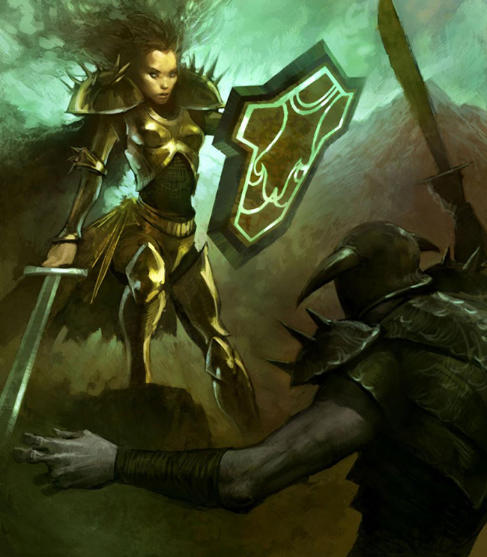Argent Squire, reused TCG art for Sarina the Immaculate