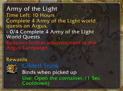 - ^ Argus Campaign name.jpg - World quest UI states "Requires further advancement in the Argus Campaign."