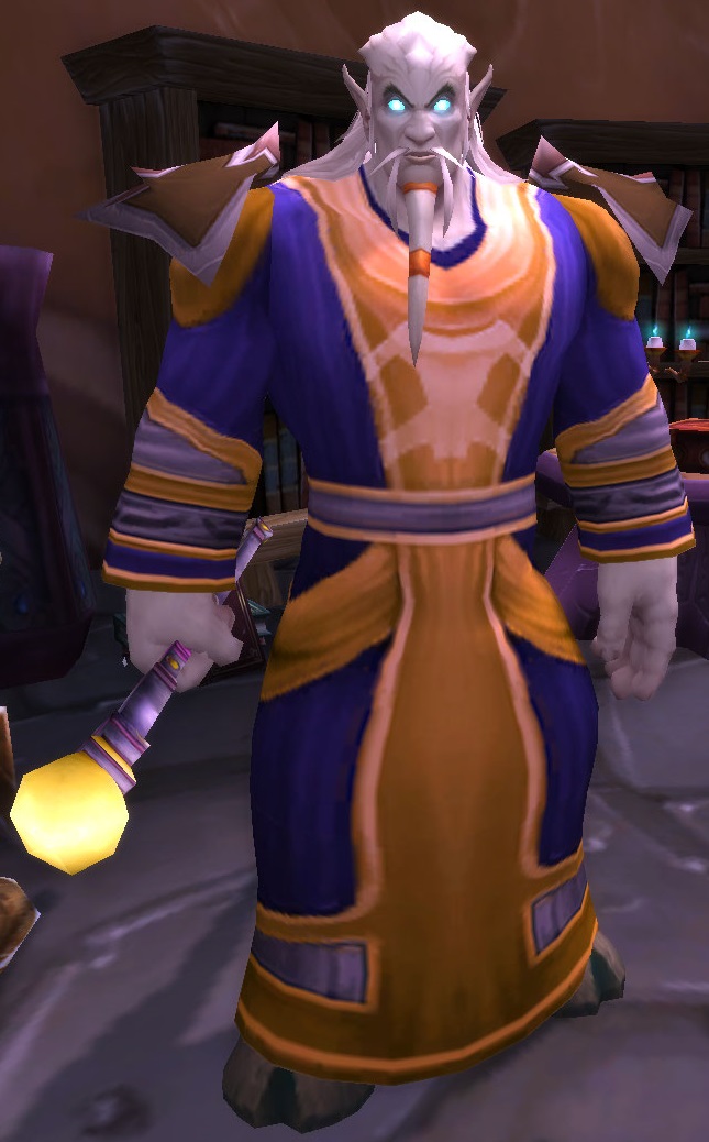 Asuur is a draenei Sha'tari artifacts vendor located in the Shrine of Unending Light in Shattrath City.