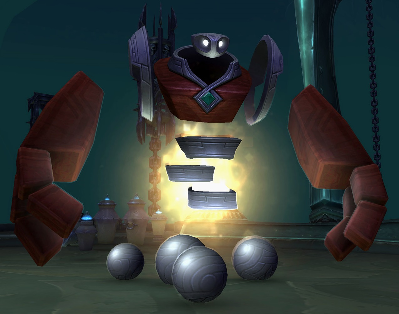 During the war against the Jailer, a number of automa were corrupted by Domination magic and joined the ranks of the Mawsworn to serve Zovaal the Jailer.