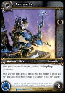 | Rules | When you strike with this weapon, your hero has Long-Range this combat. When your hero deals combat damage with this weapon to a hero, your hero deals that much frost damage to target ally in that hero's party. |