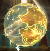 Azeroth's southern polar ice cap on a projected globe in the Halls of Lightning.