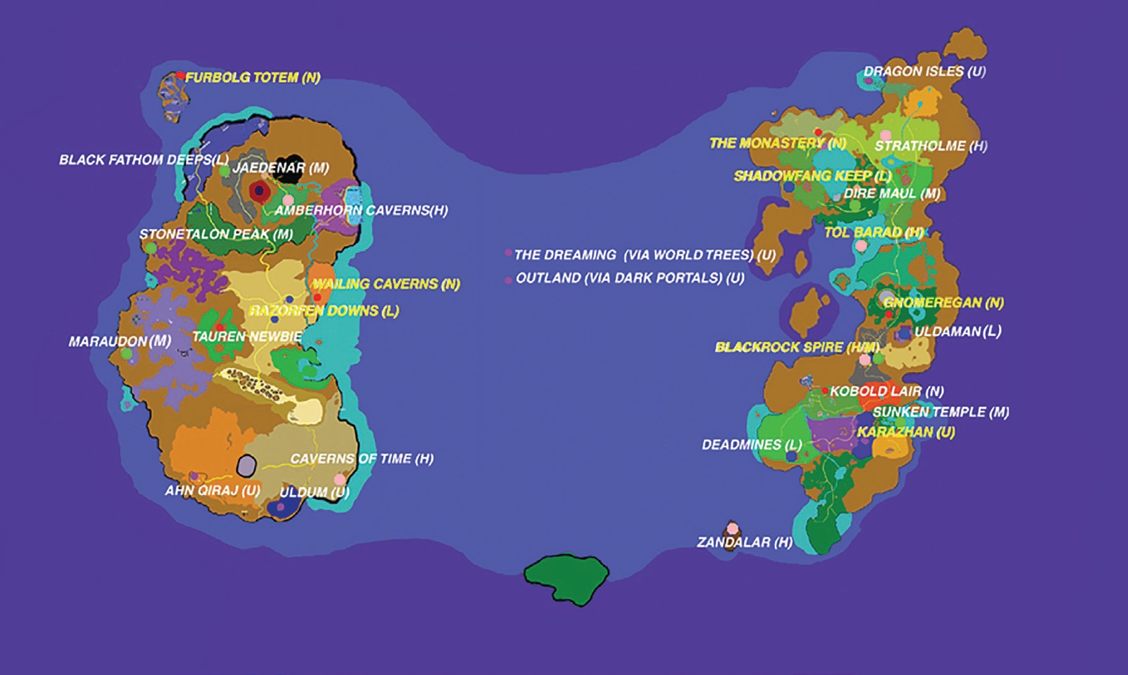 A map of ancient Kalimdor as seen in Black Rook Hold.