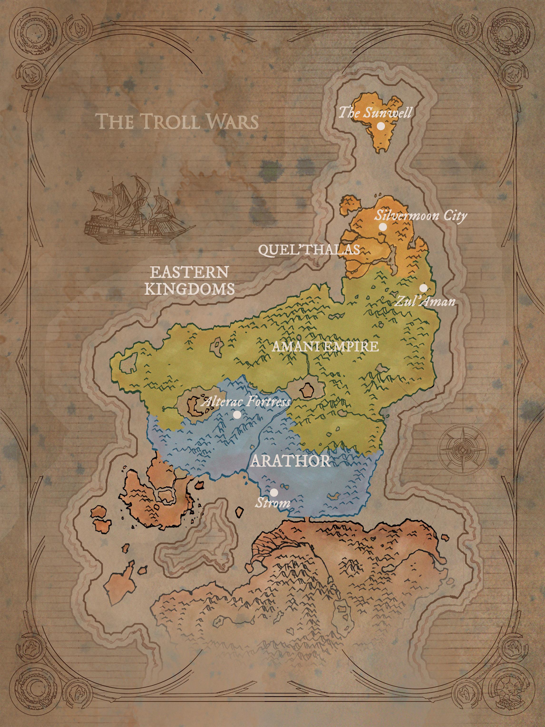 Map of the forest troll, human, and high elven territories in the Eastern Kingdoms