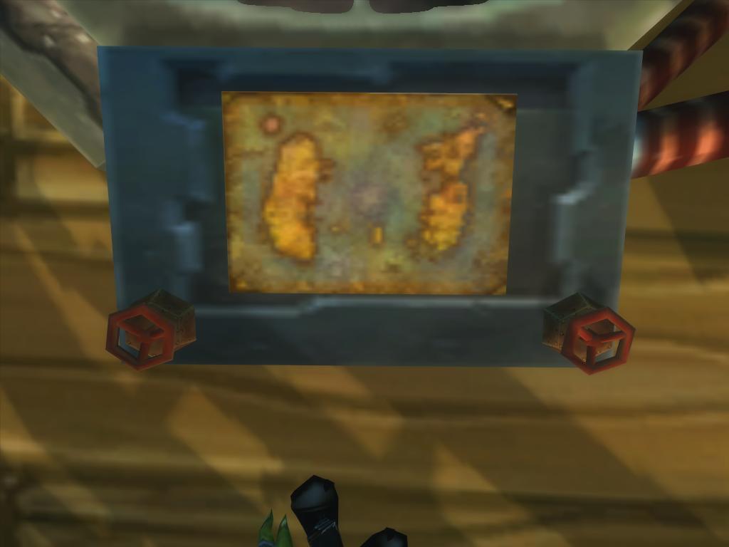 Map of Azeroth near a teleporter in Booty Bay, near the Salty Sailor Tavern.