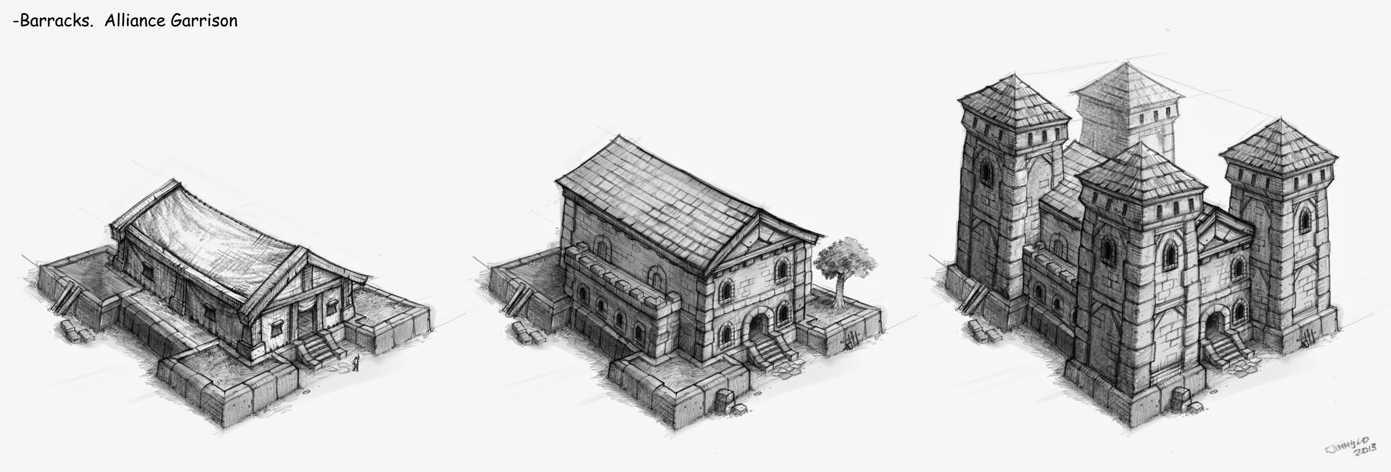 Similarly, the orc stronghold design was combined with the Horde barracks of Warcraft II to create the type used in World of Warcraft. Though, the same model is not used for both structure types; the old barracks design went to the stronghold (minus the rear fifth tower for some reason), and a new, more open design based on the style from Warcraft III was created for the barracks. Once again barracks and strongholds are often interchangeable in dialogs.[6] Starting with the war against the Lich King, the orcs also began building metallic barracks, to the point that during the offensive they often replaced inns in orc bases. There are two variants of these metallic barracks models, one with two floors inside the tower and one with three. Given the pattern, the expanded orc barracks is probably also sometimes a stronghold.