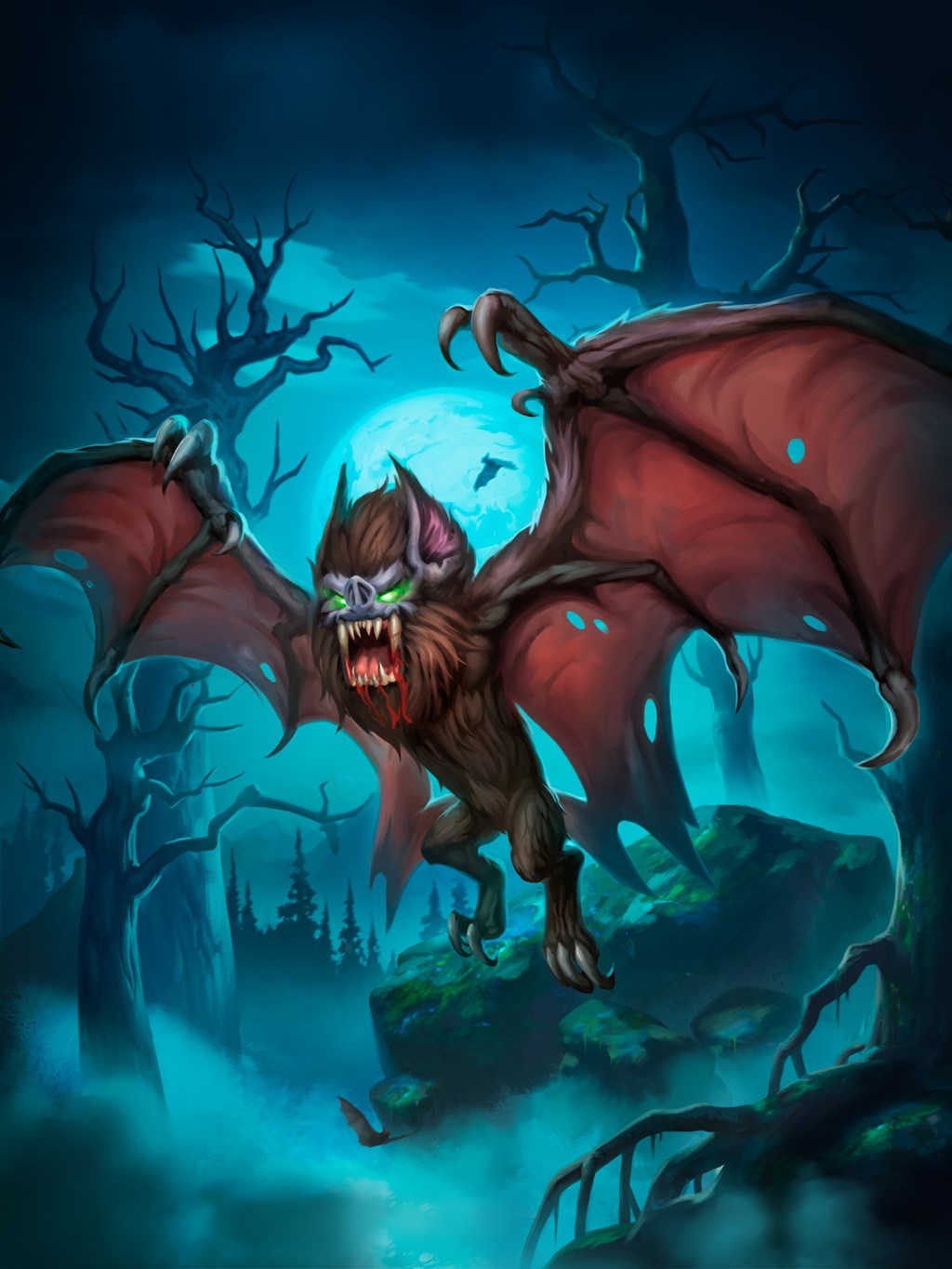 Most bats usually feed on fruit and insects and are no bigger than the average bird. A number of bat species in Azeroth grow to enormous size and pose a threat to adventurers.