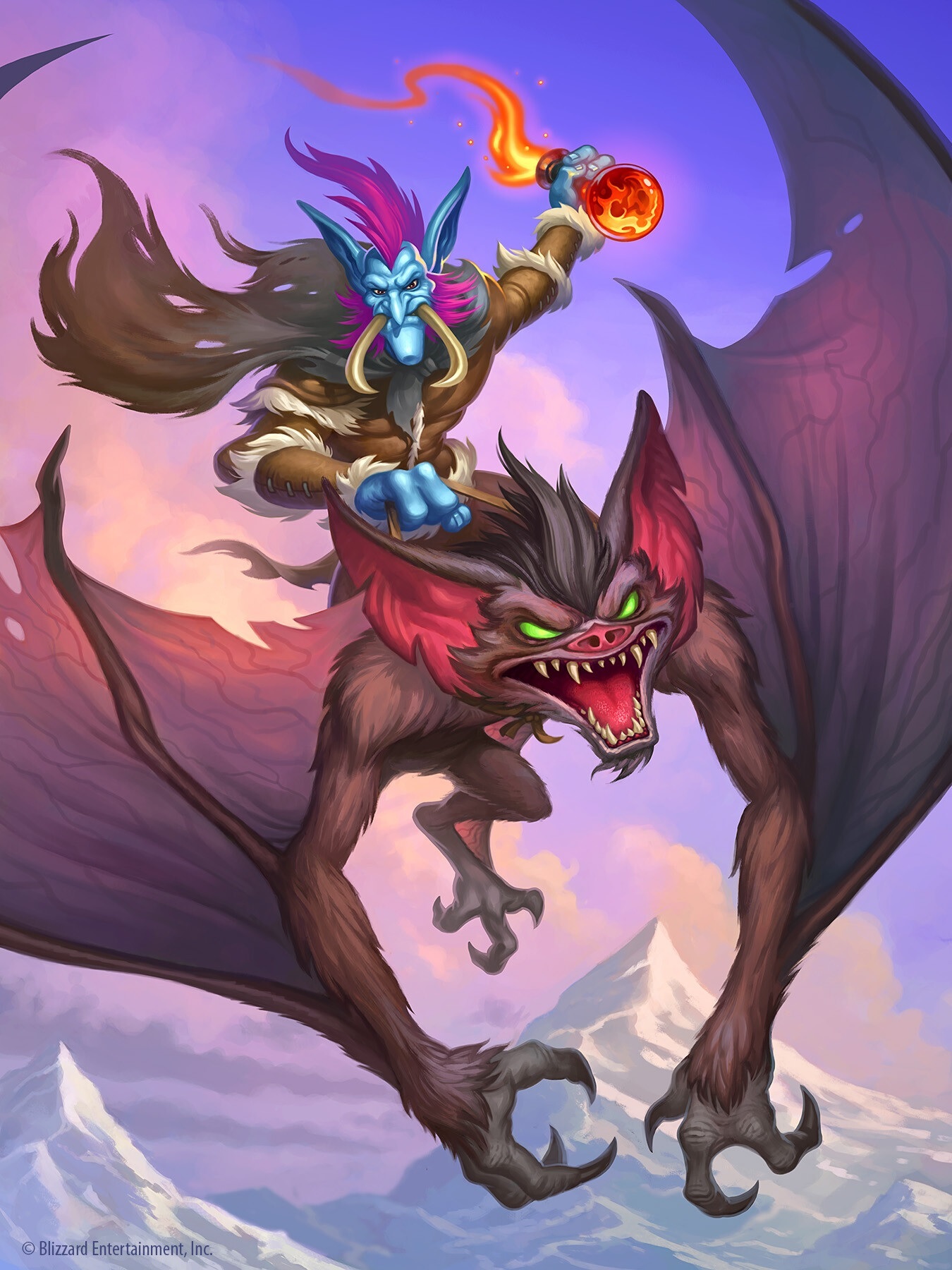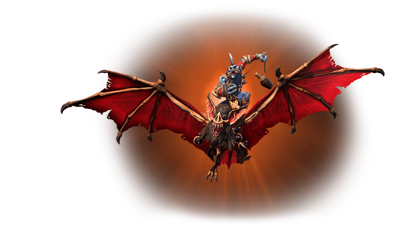 Concept art of a bat and his troll rider in Warcraft III: Reforged.