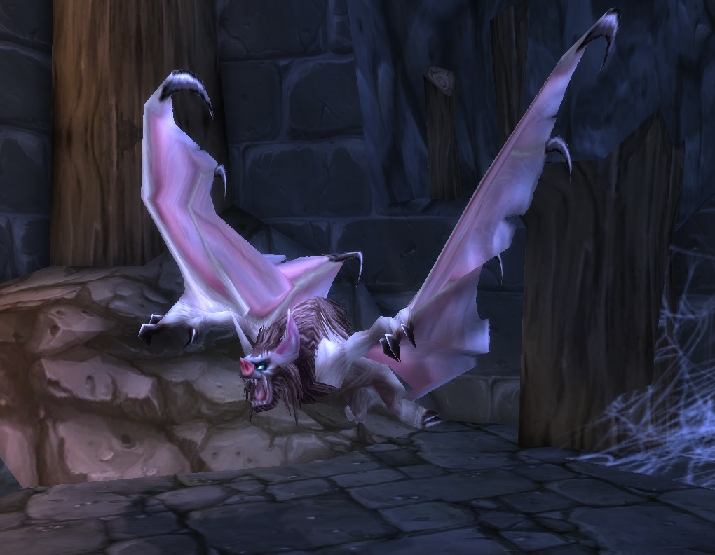 Bats are found in the Tirisfal Glades, Blackrock Depths, Shadowfang Keep, Zul'Gurub, Razorfen Kraul, Eastern Plaguelands, Ghostlands, Karazhan, and Uldaman. The monstrous, flesh-eating bloodwing bat hails from the misty jungle islands of the South Seas, where it is the undisputed ruler of the night sky.[6]