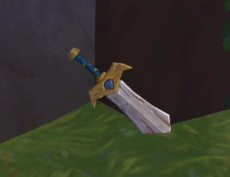 The Battered Sword found on the ground at the Goldfield Farmstead in Stormsong Valley.