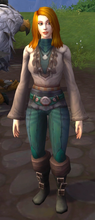 Bernadette Robels is a human located at Eckhart Lodge in Stormsong Valley. She is tending to Storm's Feather.