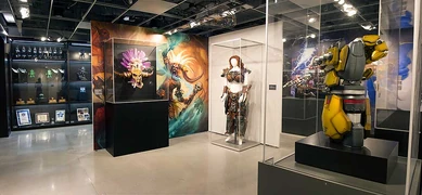The museum also houses some of the art exhibits created for display at BlizzCon and other gaming shows, including life-size statues from StarCraft: Ghost, along with various characters and monsters from World of Warcraft. Besides artworks, the museum holds other items of historical interest and keepsakes, such as special edition merchandise, game launch event souvenirs, the original letter and $15,000 loan Mike Morhaime used to start Silicon & Synapse (which grew into Blizzard Entertainment), merchandise, awards their games have won, and much more.