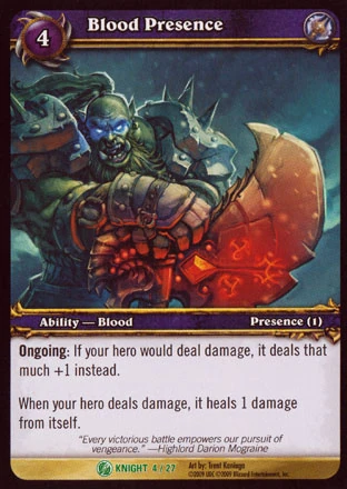 ![]() Full art (v) "Every victorious battle empowers our pursuit of vengeance." - Highlord Darion Mograine | |