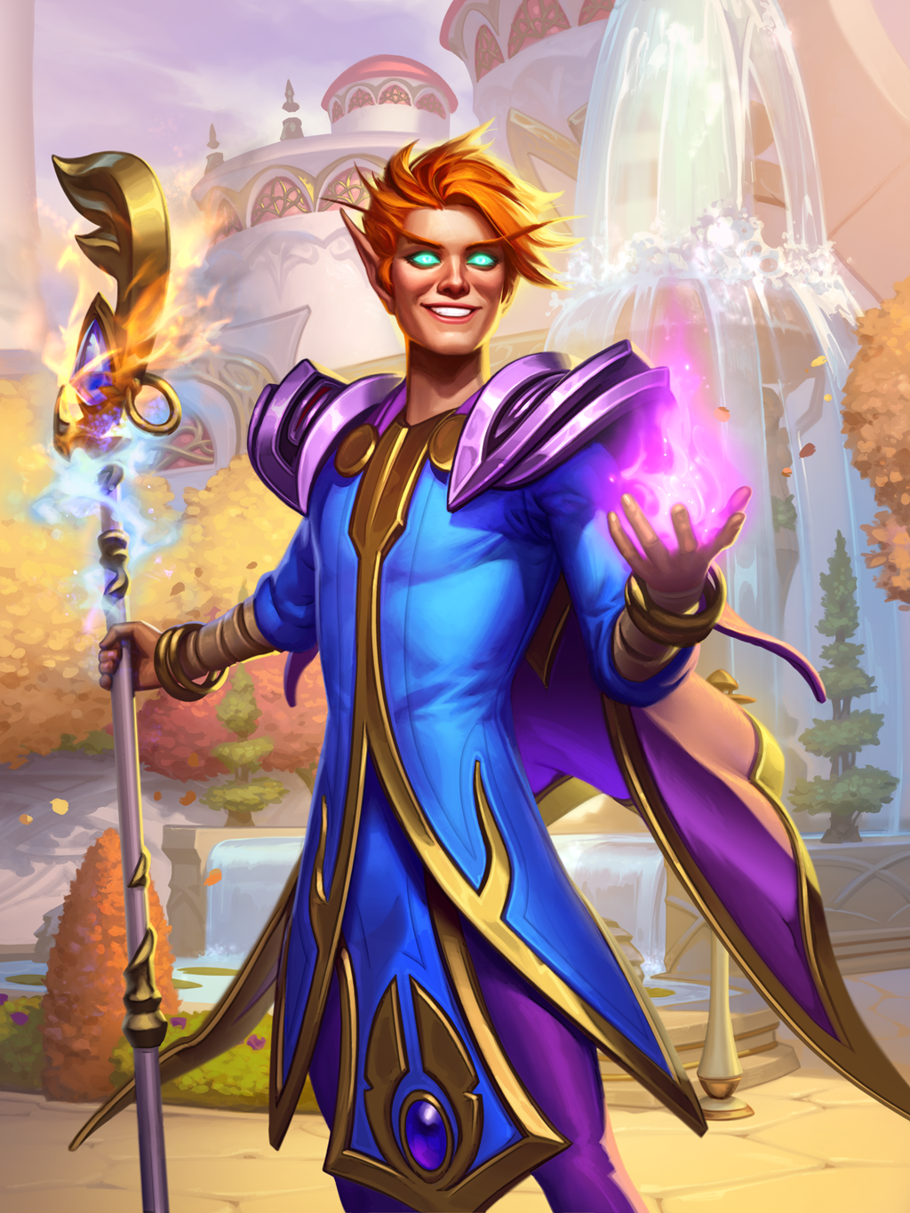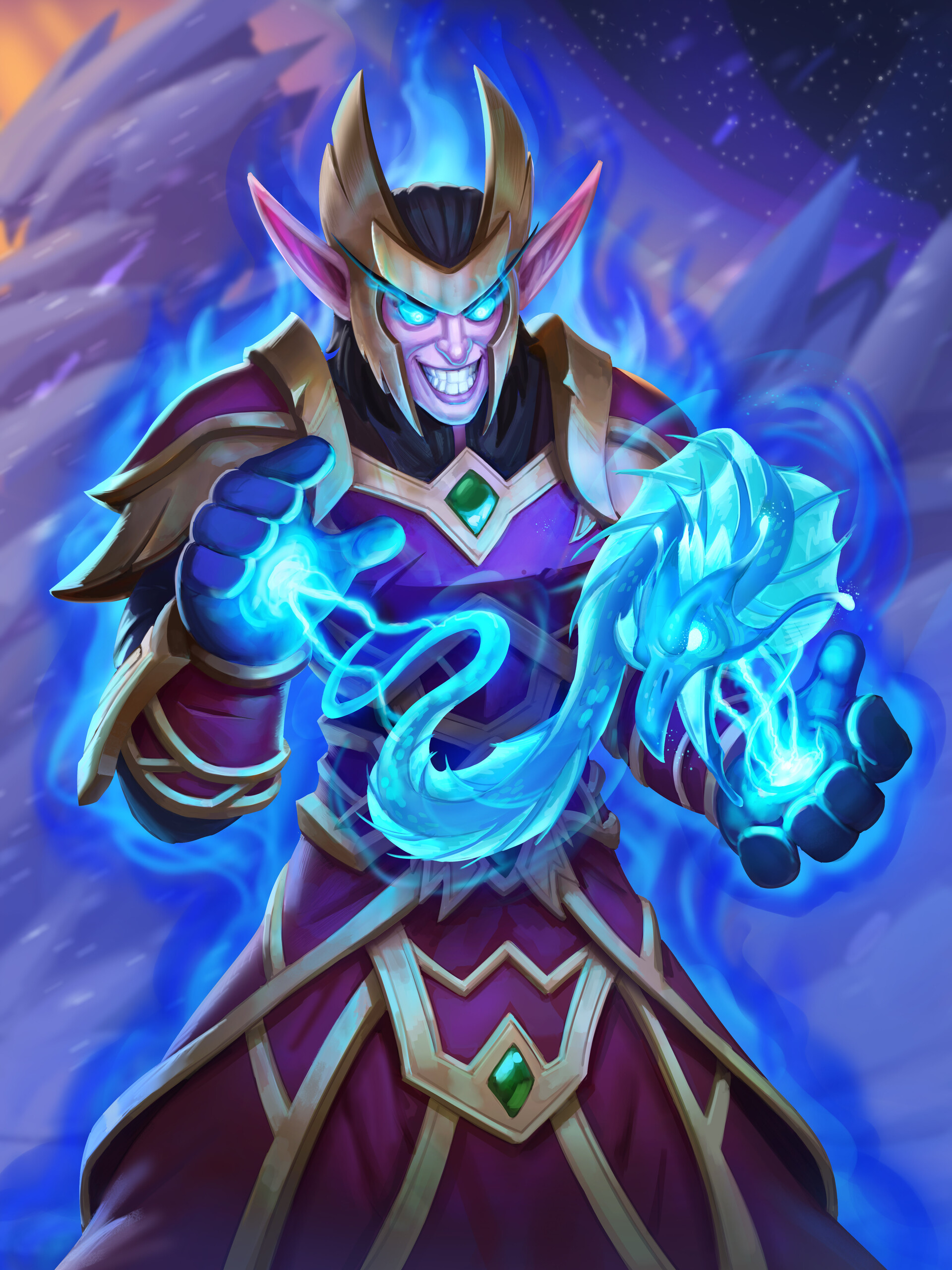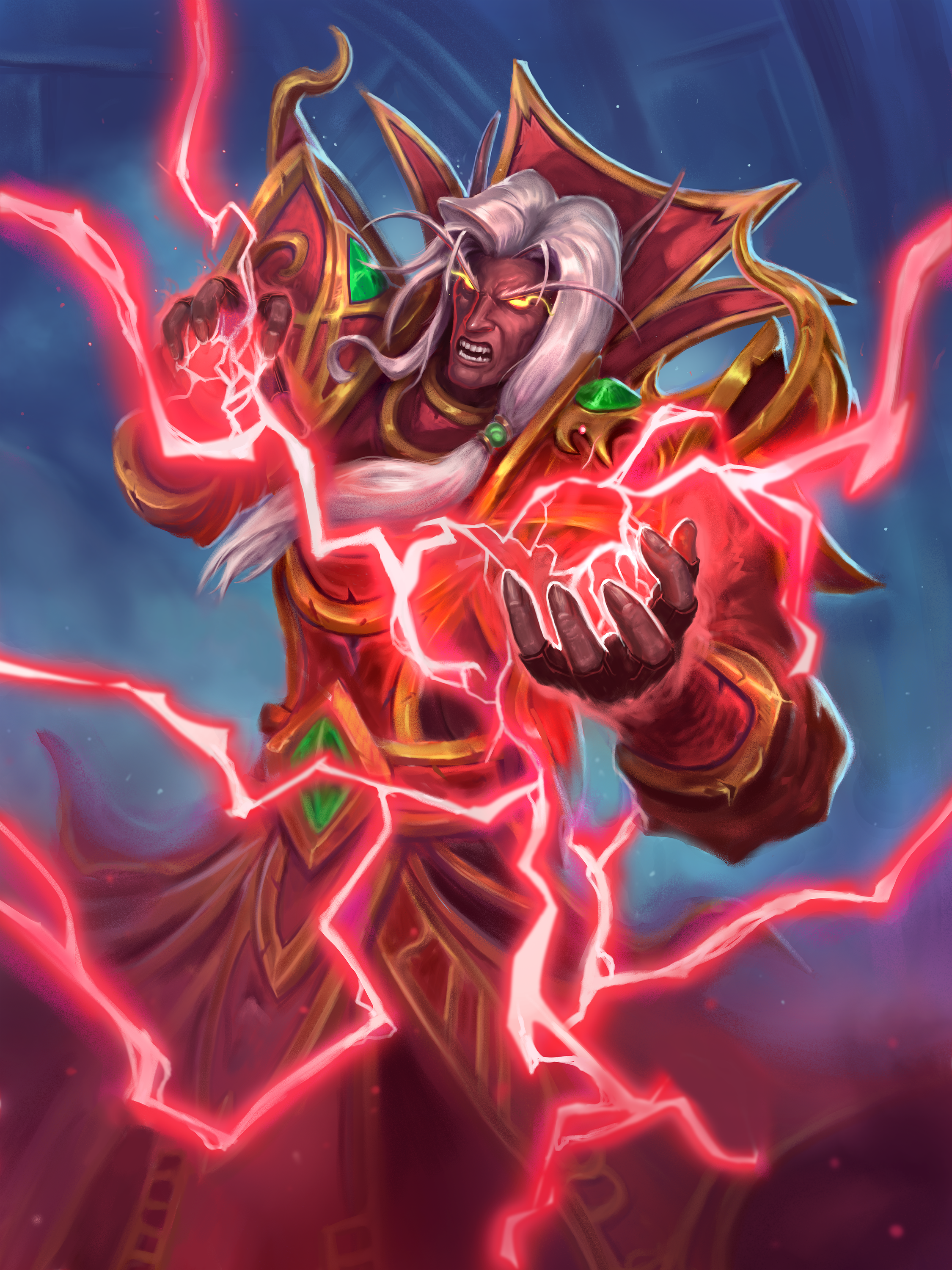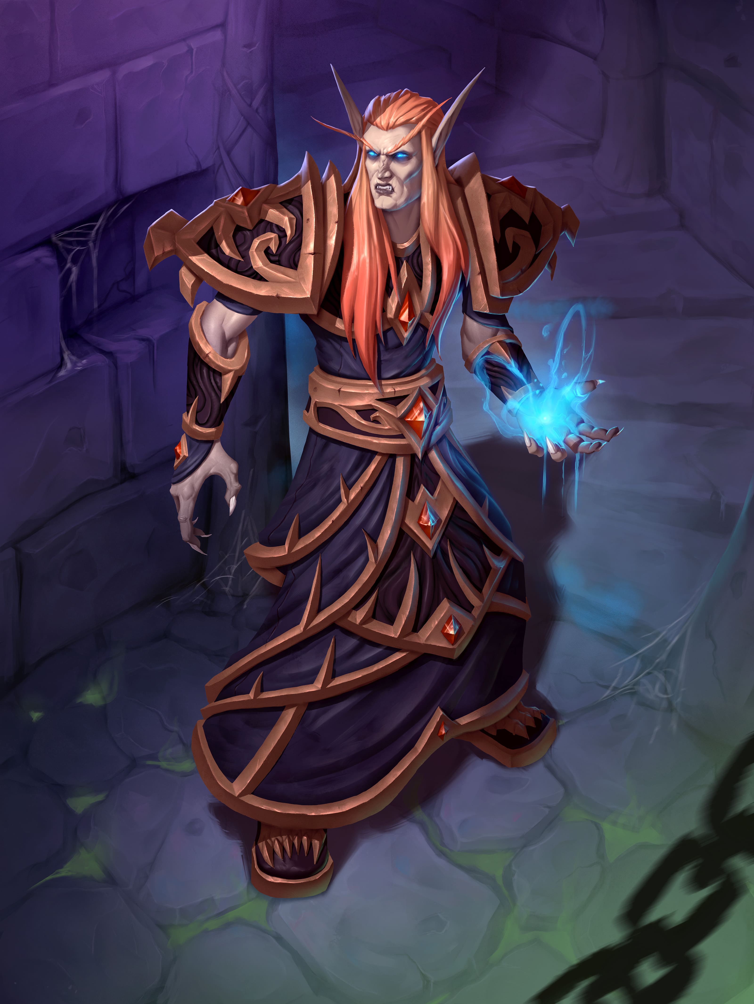 A blood mage fighting the undead forces of the Scourge.