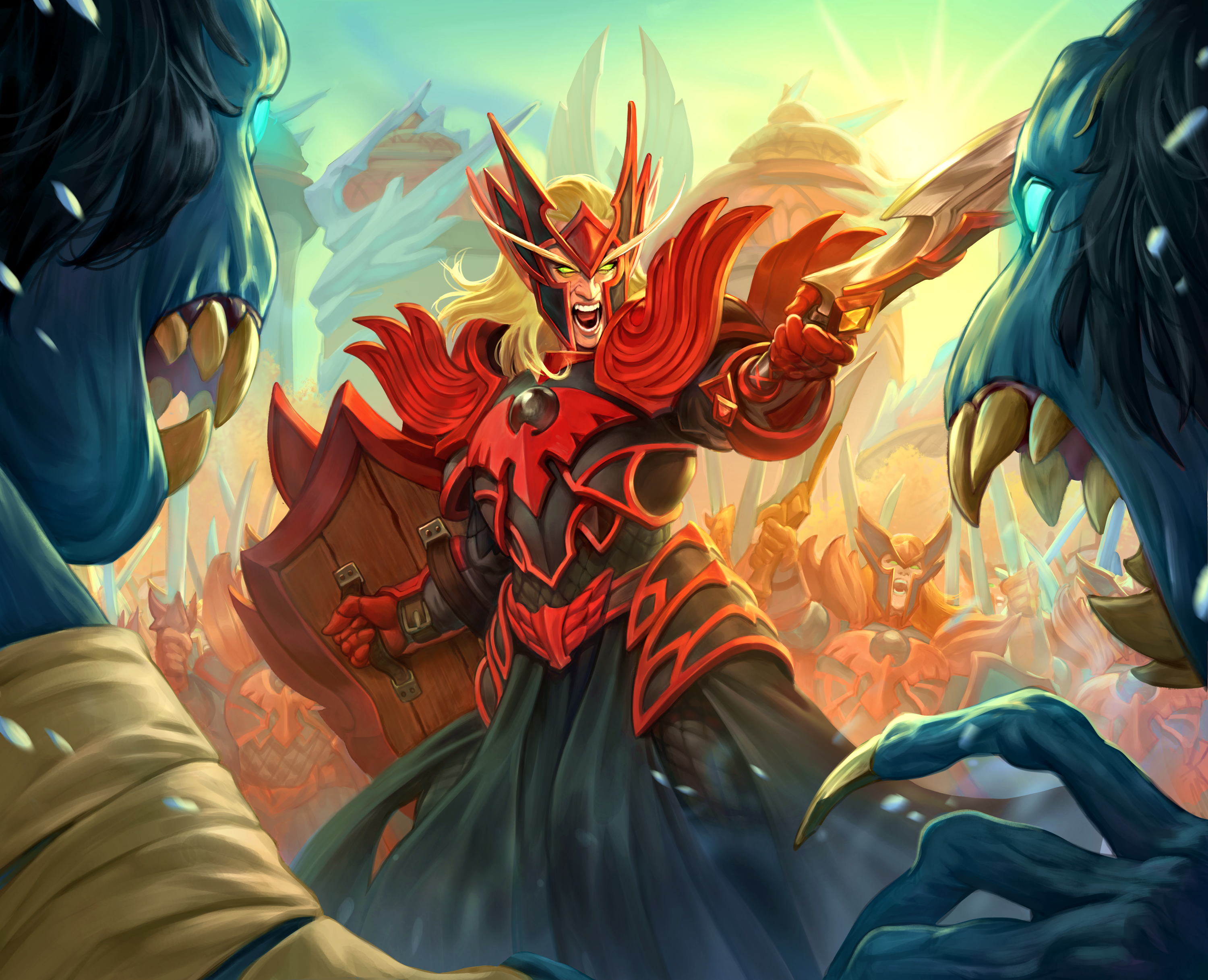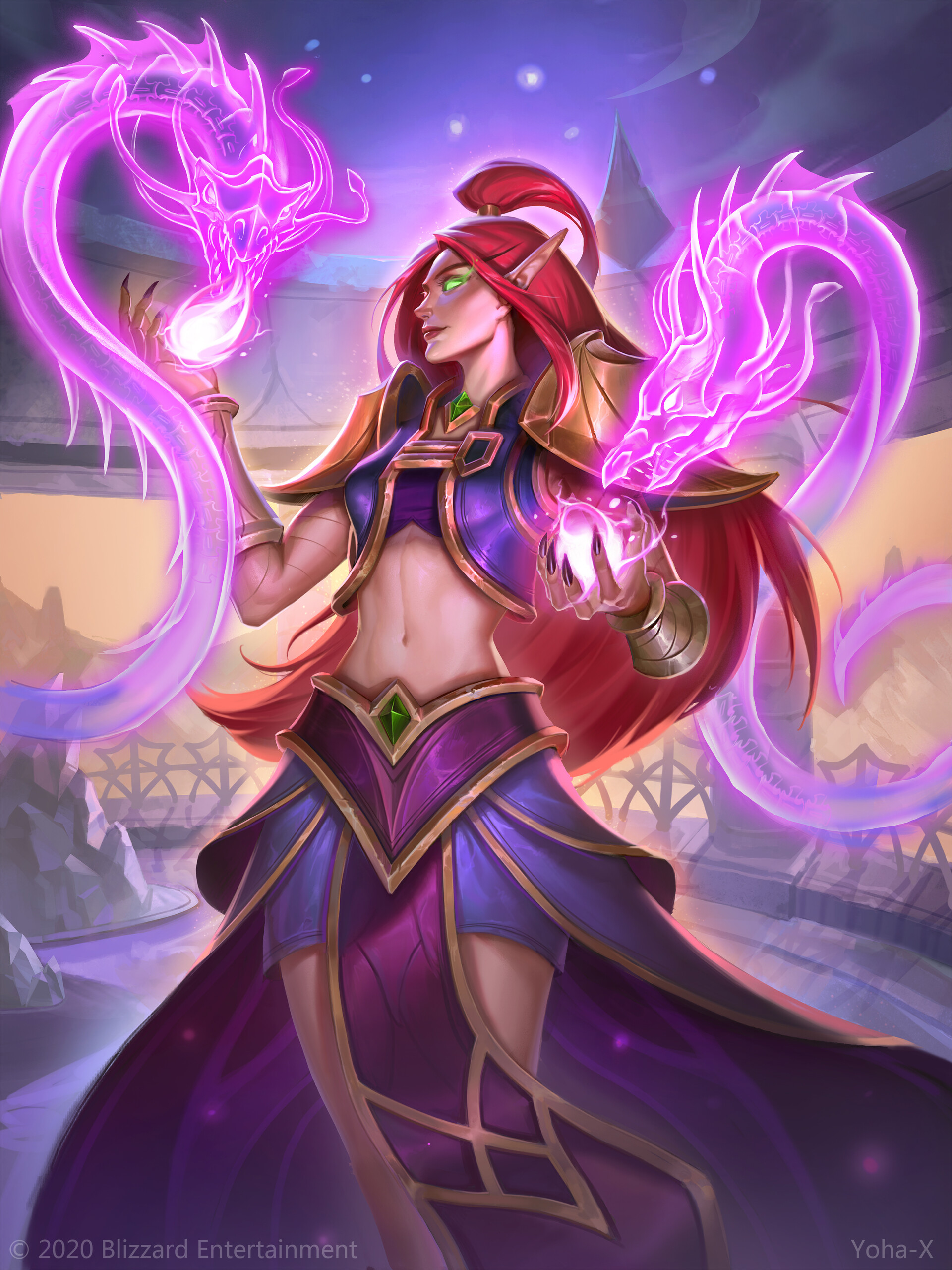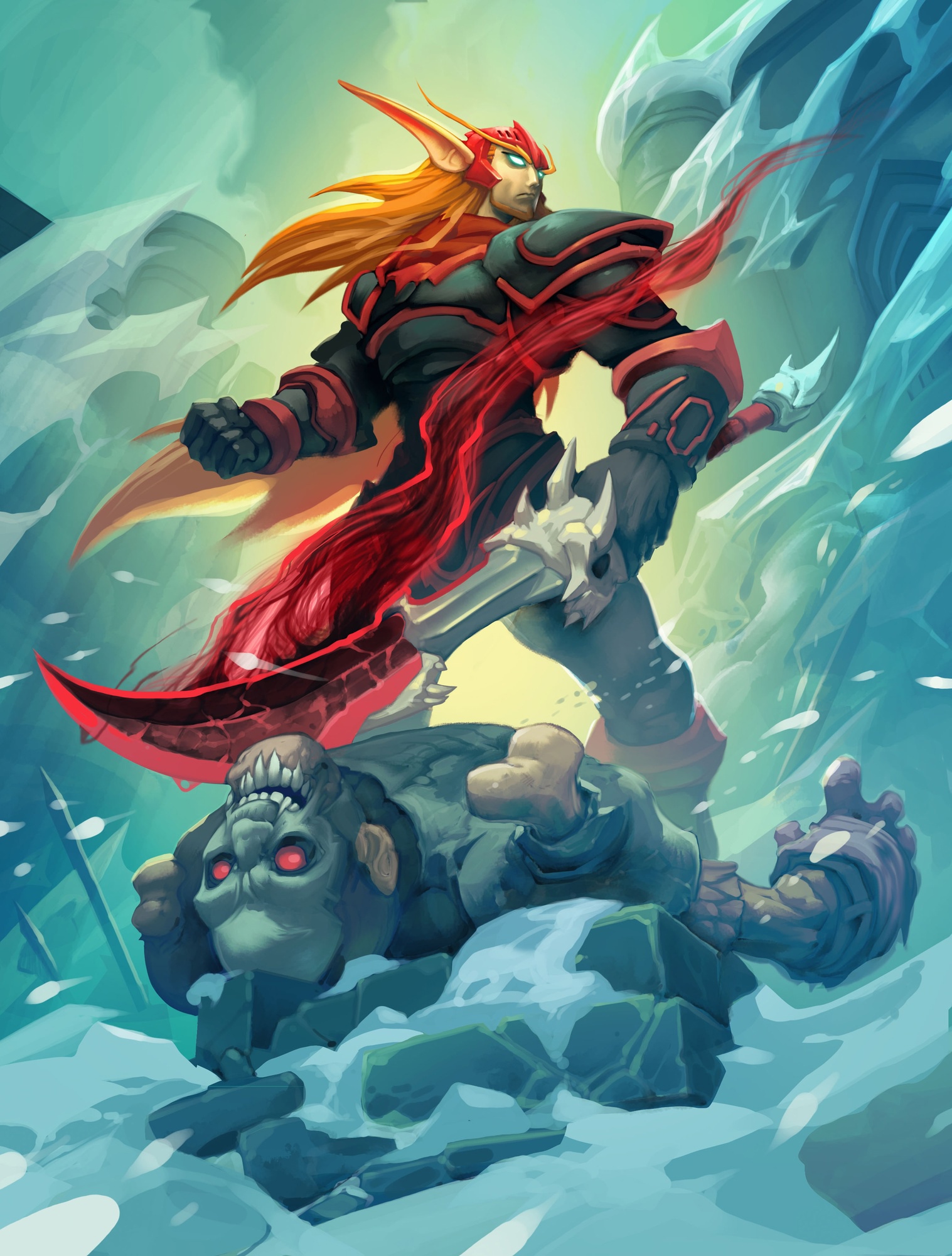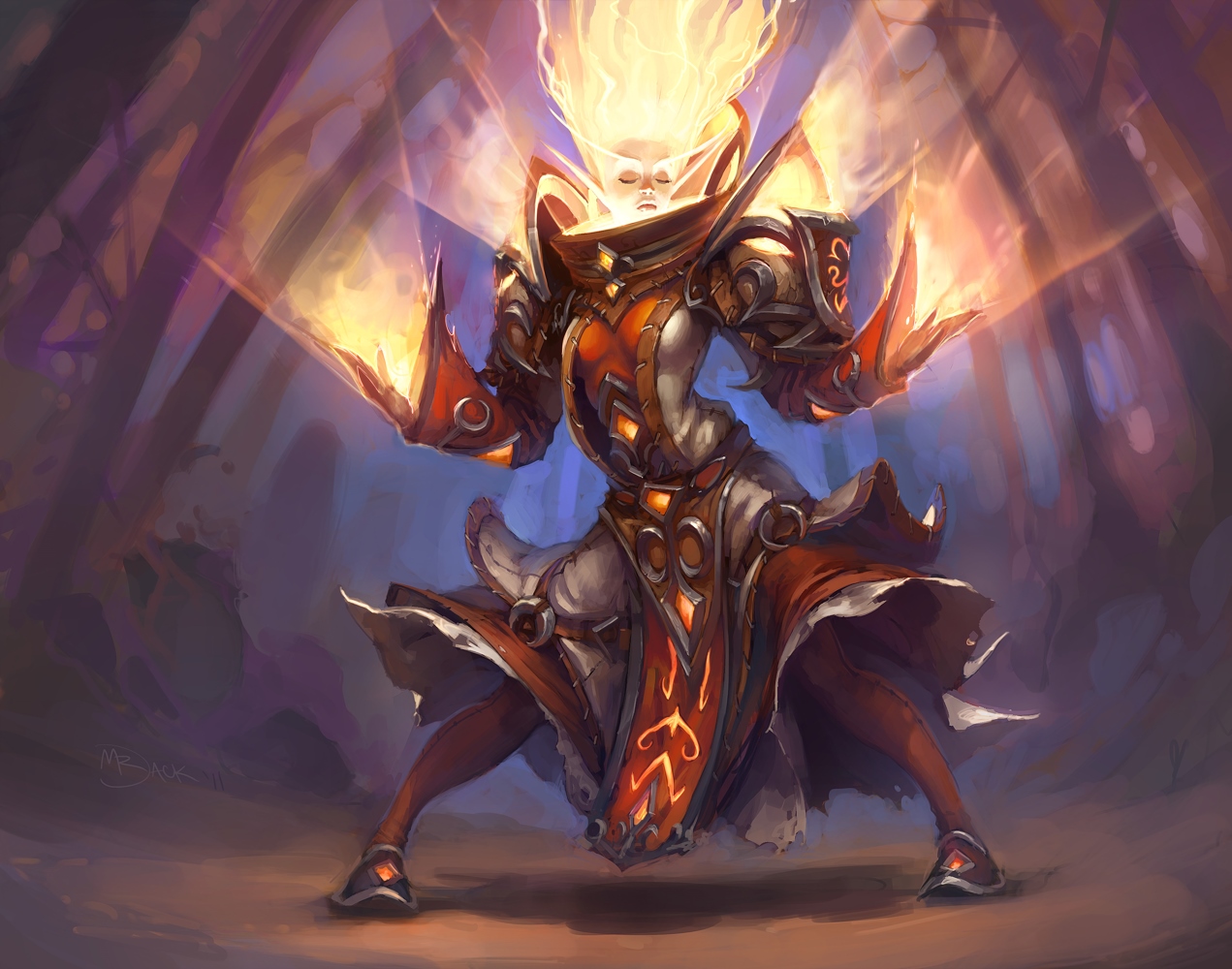 A blood mage fighting the undead forces of the Scourge.