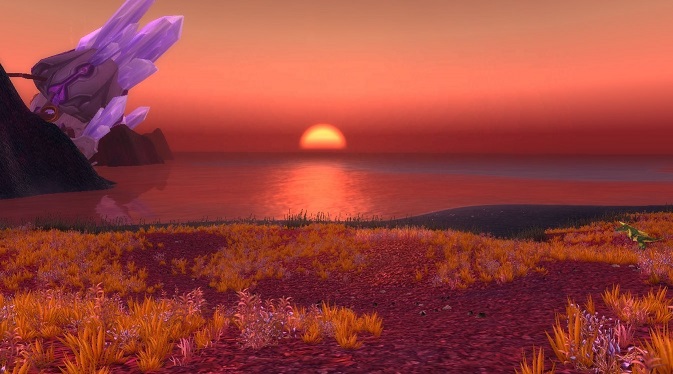 The sun setting over the Veiled Sea from Bloodmyst Isle.
