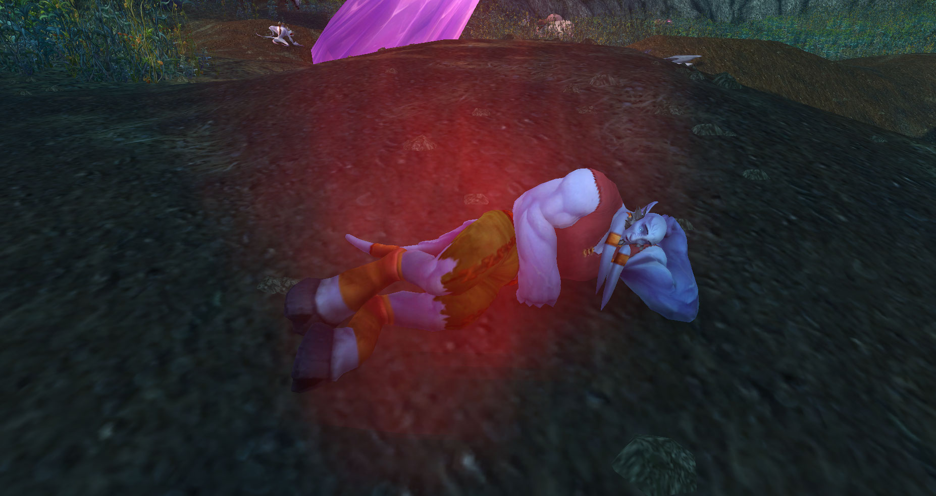 Bloodmyst Radiation was an affliction that poisoned the local fauna and flora of Azuremyst and Silvergale isles. This was caused by the crash of the Exodar, which allowed bloodmyst crystals to be scattered all throughout the lands.[1] Very little life on Silvergale Isle remains untainted and because of the contamination, its name was changed to Bloodmyst Isle.[2][3]