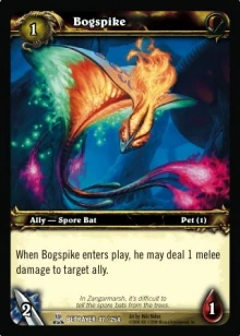 | Rules | When Bogspike enter play, he may deal 1 melee damage to target ally. |