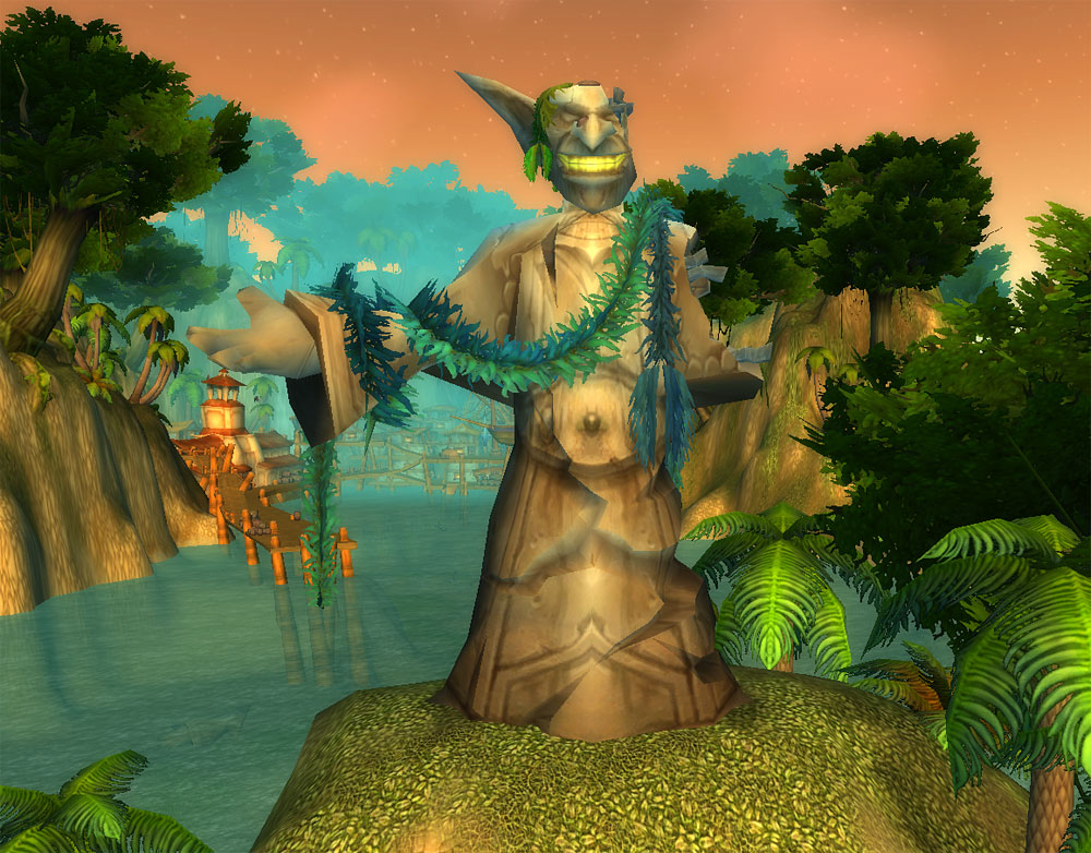 Outside of Booty Bay, on the island of Janeiro's Point, is a giant statue of an unknown goblin with outstretched arms which was built as a beacon to all travelers, welcoming ships to the port.[11]