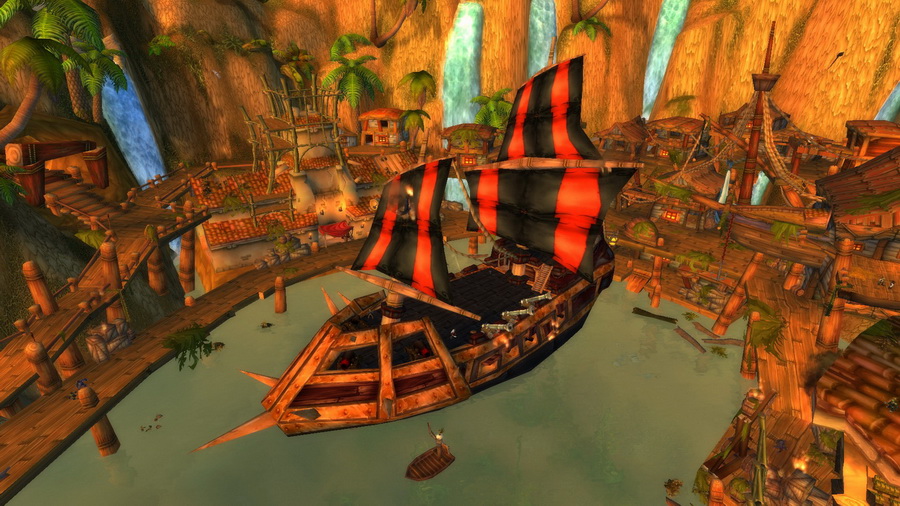 At the same time, tensions between Booty Bay and the Bloodsail Buccaneers have come to a head, and the town was under a direct pirate attack, set ablaze, and blockaded. The Brashtide Crew stormed the area, and some of the inhabitants were in terror, others were stationed outside their buildings ready for a fight. The port was ultimately defended by the adventurers.