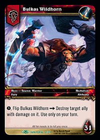 Bulkas Wildhorn is a Tauren warrior found in the Through the Dark Portal set of the World of Warcraft Trading Card Game. He is yet to appear in any of the games.