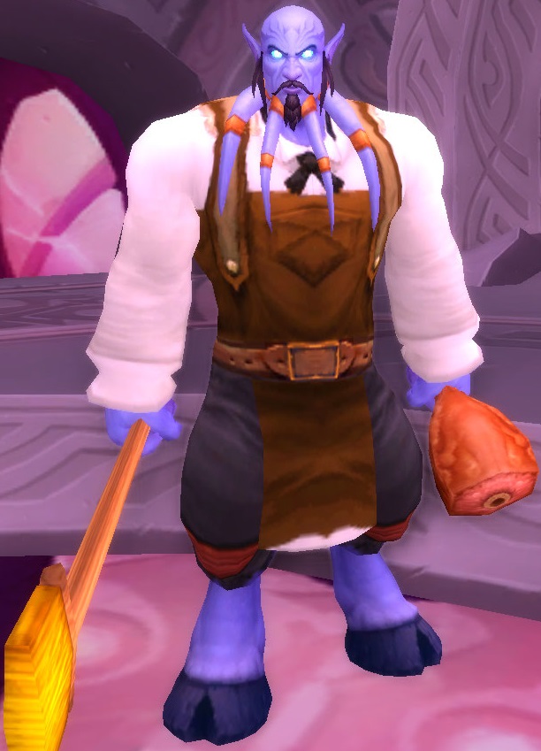 Caregiver Topher Loaal is a draenei innkeeper and vendor located in Blood Watch on Bloodmyst Isle.