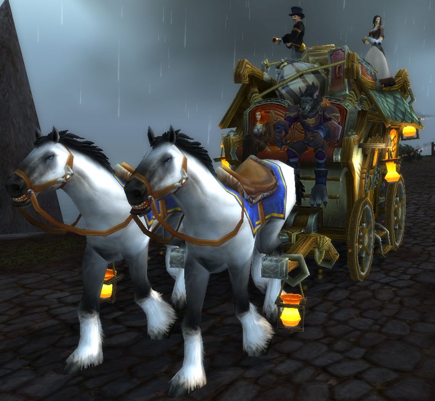 Gilneans use stagecoaches, while the nightborne elves use carriages without wheels called palanquins.