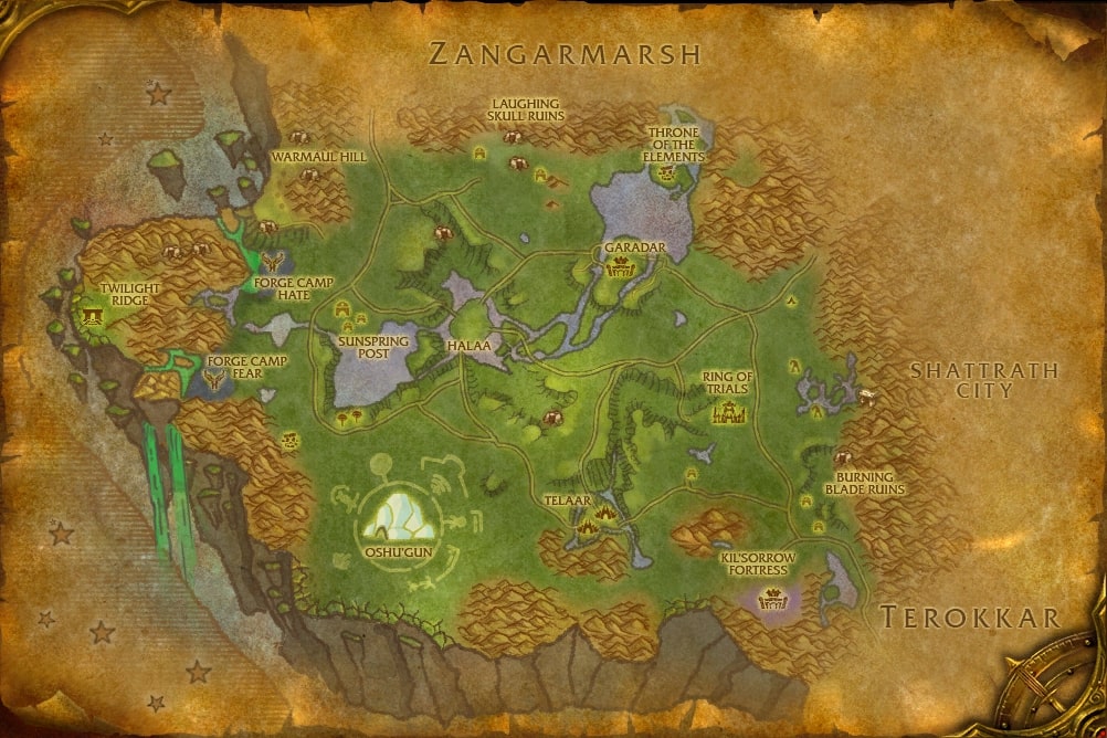 Nestled in the hills between Nagrand and Zangarmarsh, Challe's Home For Little Tykes[50, 14] is a haven for children of both factions.
