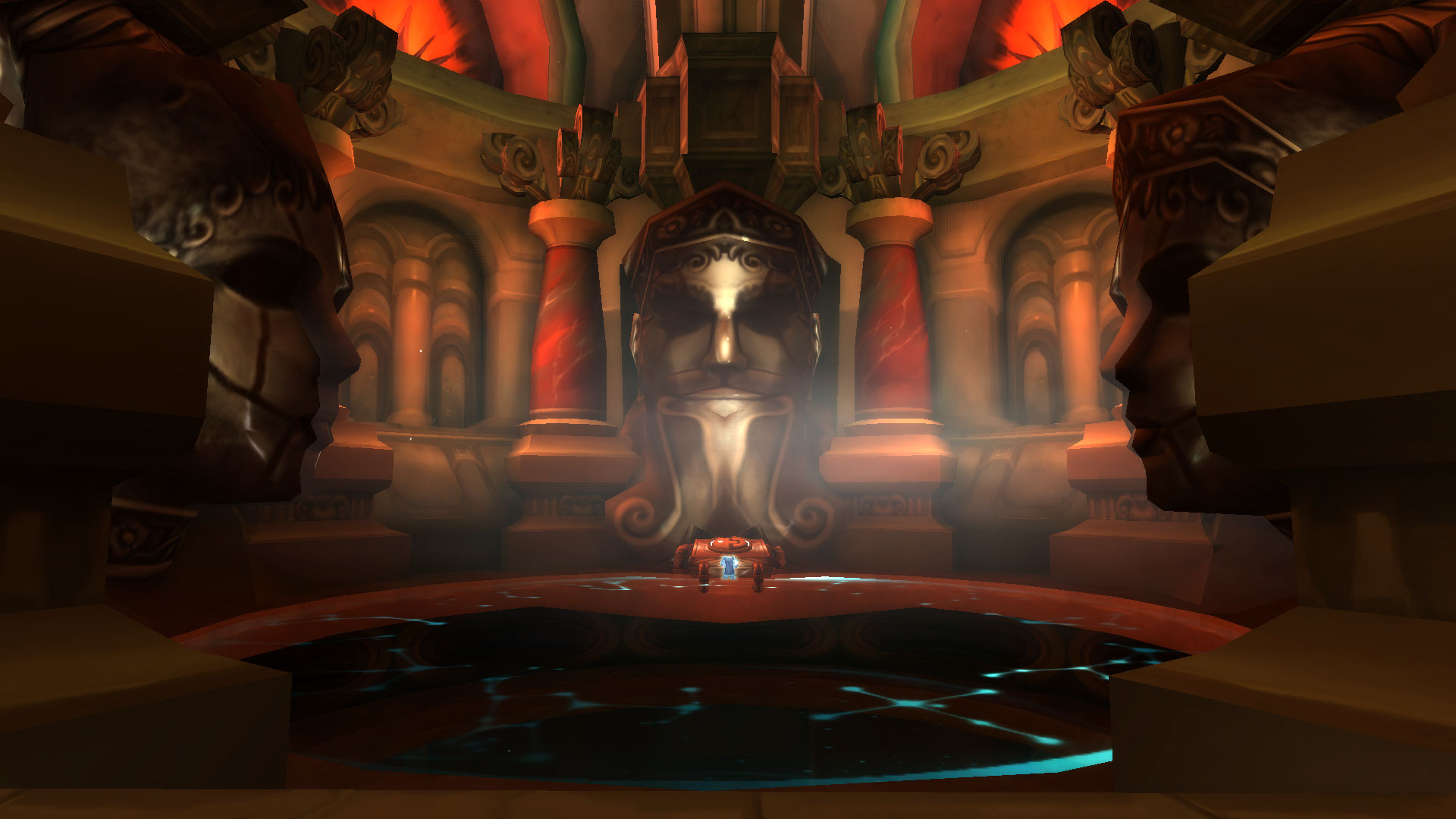 The Chamber of Observance is found at the end of the Hall of Communion. It is a room with what look like the large, carved heads of titans gazing out from its walls. The heartbeat of Azeroth is so loud here that even entirely nonspiritual, such as Muradin Bronzebeard and his brother Brann, could hear it when they visited the chamber. The Maiden of Vitality is here to watch over Azeroth's well-being.[1]