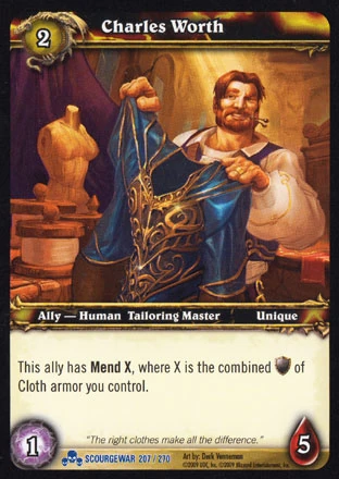| Rules | This ally has Mend X, where X is the combined Defense of Cloth armor you control. |