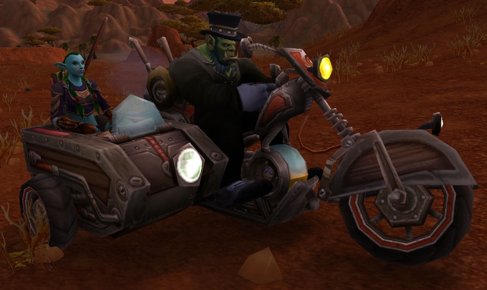 The Chauffeured Chopper teaches you how to summon a Chauffeured Mekgineer's Chopper or Chauffeured Mechano-Hog mount. The chopper is driven by Franklin Martin or Koak Hoburn while the player character rides in the side car—though the player still controls the chopper's movement.