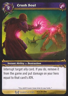 | Rules | Interrupt target ally card. If you do, remove it from the game and put damage on your hero equal to that card's ATK. |