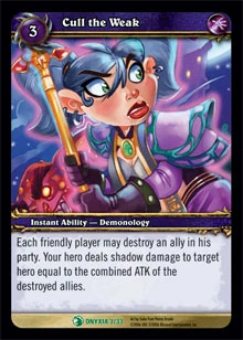 | Rules | Each friendly player may destroy an ally in his party. Your hero deals shadow damage to target hero equal to the combined ATK of the destroyed allies. |
