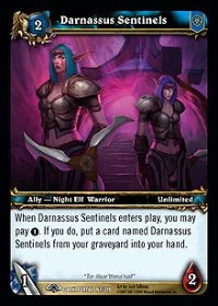 | Rules | When Darnassus Sentinels enters play, you may pay (1). If you do, put a card named Darnassus Sentinels from your graveyard into your hand. |
