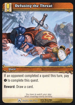 If an opponent completed a quest this turn, pay (1) to complete this quest. Reward: Draw a card. |